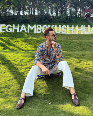 Printed Muslin Kurta in the alluring shade of Jaipur Blue.