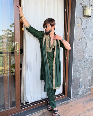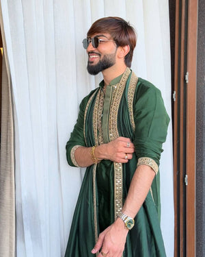 REGAL GREEN SILK EMBRODRED KURTA WITH DUPATTA SET